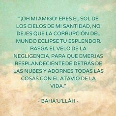 ¡Oh mi Señor! Haz de tu belleza mi alimento y de tu presencia mi bebida; de tu agrado mi esperanza y de tu alabanza mi acción; de tu recuerdo mi compañero y del poder de tu soberanía mi socorro; de tu morada mi hogar y de mi vivienda la sede que Tú has santificado de las limitaciones impuestas a quienes están separados de Ti como por un velo.